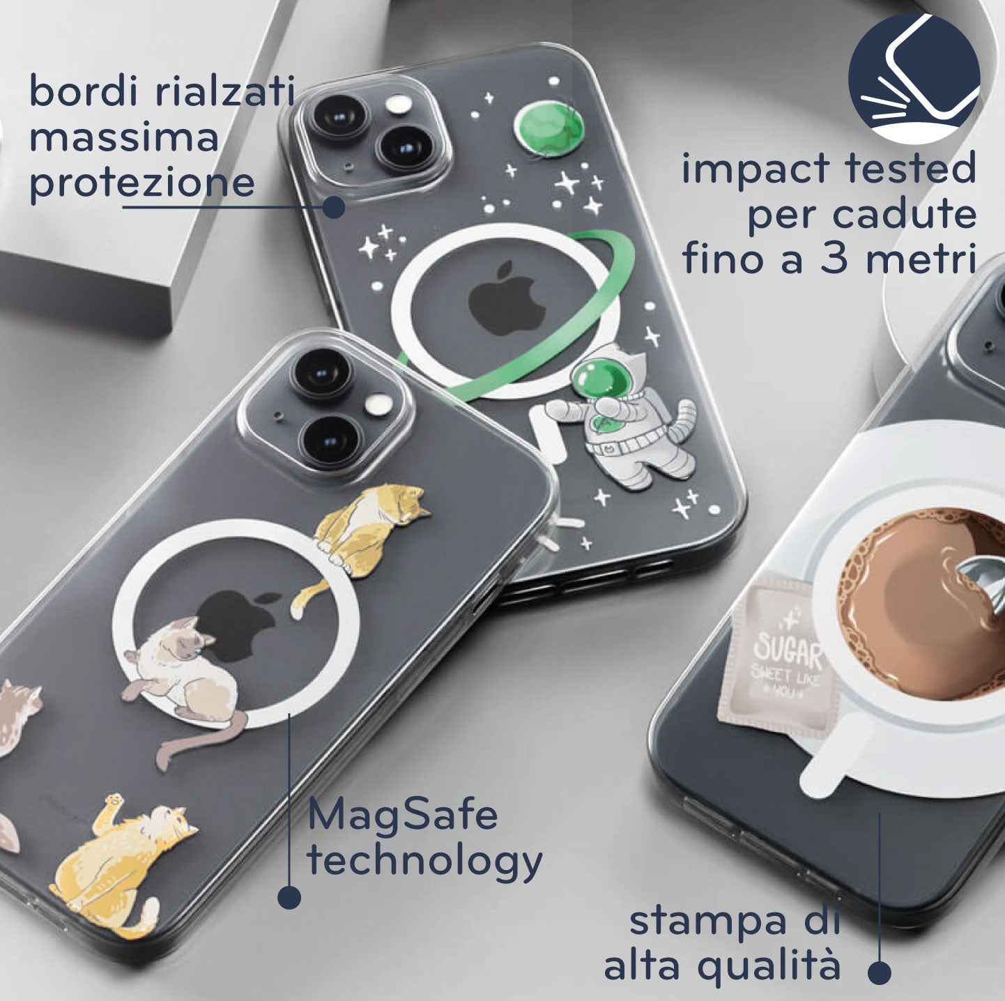 Le nostre cover per iPhone sono l'ideale per proteggere con stile il tuo device: materiale di qualità che resiste all’ingiallimento, un design studiato per ridurre al minimo i danni da caduta e le grafiche esclusive che i nostri artisti hanno realizzato per te.