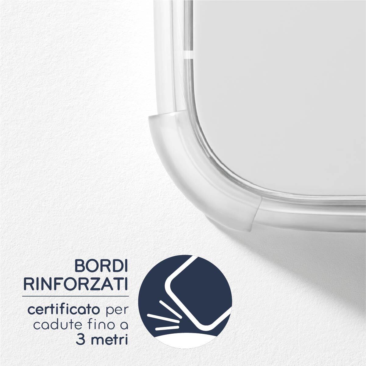 Le nostre cover per iPhone offrono massima protezione: certificate per resistere a cadute da 2-3 metri (a seconda del modello), con grip antiscivolo e bordi spessi di 1 mm per proteggere schermo e fotocamera.
